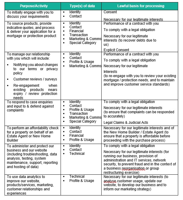We will collect and record Your Personal Data from a variety of sources, but mainly directly from you. You will usually provide information during the course of our initial meetings or conversations with you to establish your circumstances and needs and preferences in relation to Mortgages and Insurance. You will provide information to us verbally and in writing, including email.